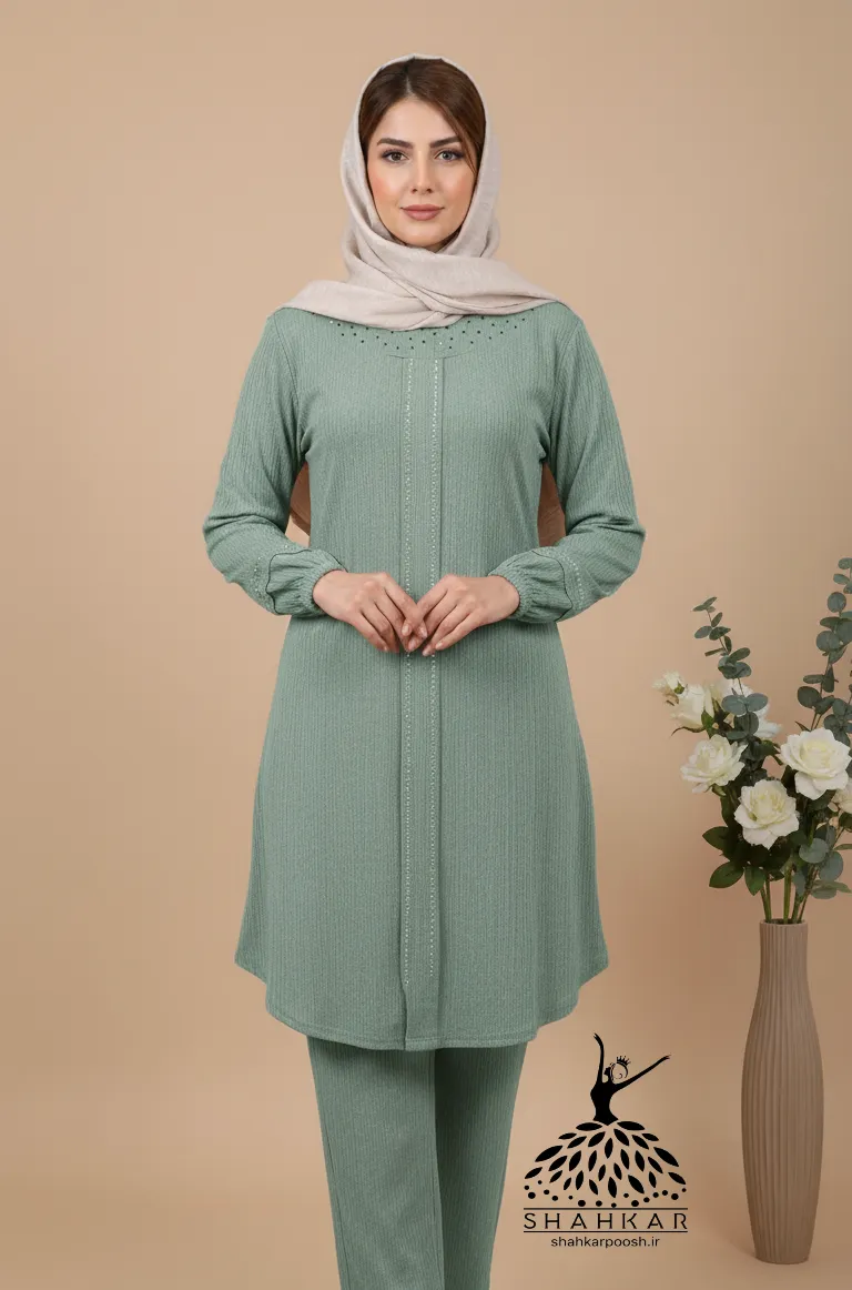 ست تونیک شلوار زنانه نگین دار مجلسی